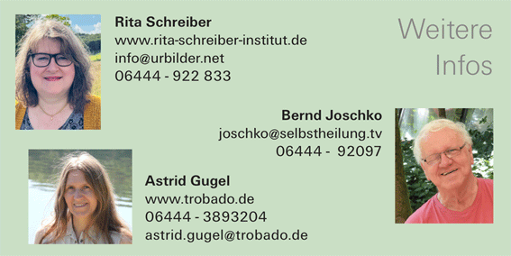 | Bitte kostenlosen Info-Code senden - Hier klicken | Weitere Infos und Sessions bei Rita Schreiber, Bernd Joschko und Astrid Gugel |